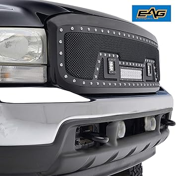 Amazon Com Eag Rivet Grille Stainless Steel Wire Mesh With Led Lights Fit For 99 04 Super Duty F250 F350 Automotive